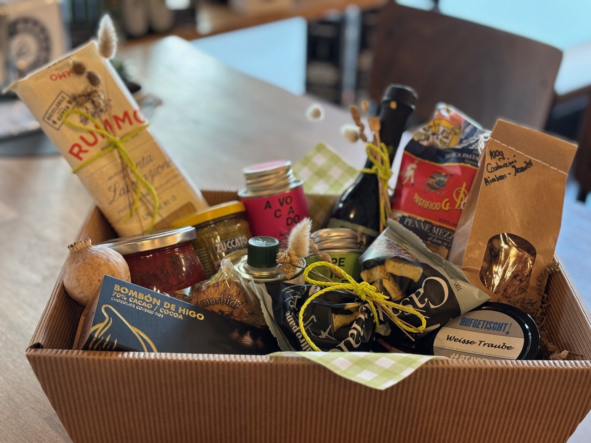 Macht Euch oder anderen eine Freude: Ihr benötigt noch das passende Mitbringsel? Ein Dankeschön? Ein Weihnachtsgeschenk? Gerne stellen wir auch Präsente und Geschenkekörbe nach Euren Wünschen zusammen. Auch in größerer Stückzahl. Und wenn Ihr noch unentschlossen seid, gibt’s natürlich auch Geschenkgutscheine.