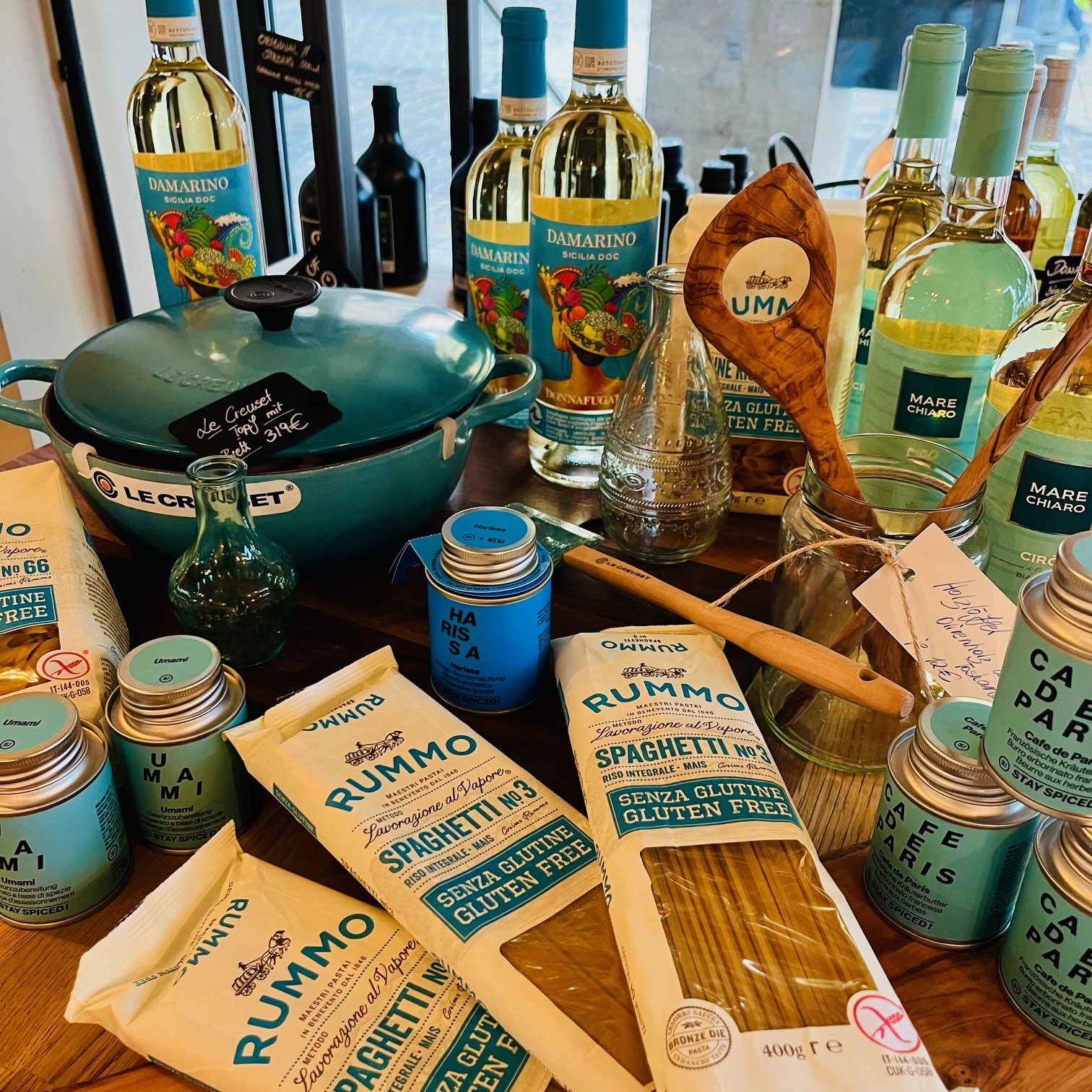 Darüber hinaus findet Ihr bei uns auch eine erlesene Weinauswahl. Und weil nicht nur wir gute Sachen machen, haben wir auch Gewürze von Stay Spiced, griechische und spanische Öle in Bio-Qualität, Nürnberger Gin und weitere erlesene Produkte.